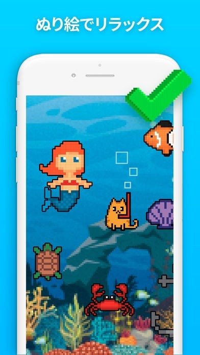 ピクセルの世界をぬり絵で楽しもう。様々な風景、シチュエーションのぬり絵で癒される!