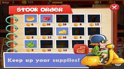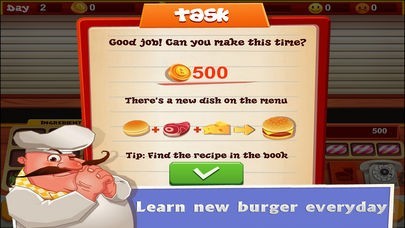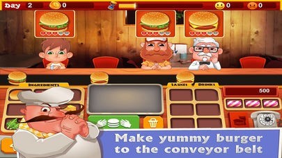 初めはハンバーガーとホットドッグが作れます。シェフになった気分でお客さんに美味しい料理を提供しましょう。成功すれば、たくさんの売り上げが入り、お店をグレードアップできます。