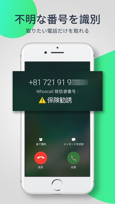 使用することで、発信者のわからない電話を取る怖さを軽減できます。発信番号と共にかけてきた相手の大まかな属性がわかるので、出るべきか出ないべきかの判断材料になります。
