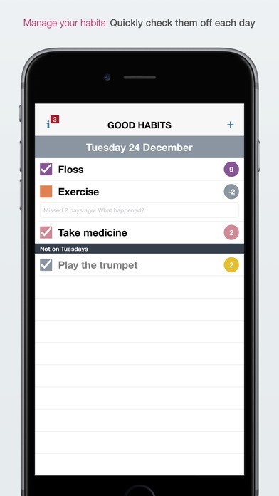 - Apple Watch app and Today widget let you track your habits for the day without launching the main app