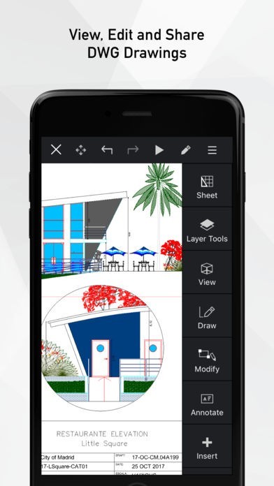 外出先でDWG図面を共有、計測、注記、作成、編集できるCADソフトェア。