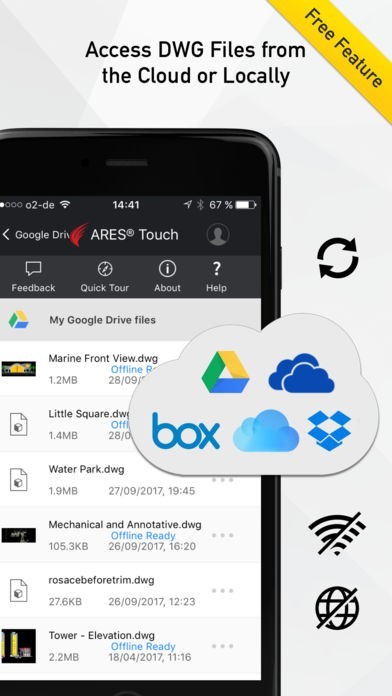 ARES Touchは、本格的なCADソリューションです。iPhone または、iPad でDWG図面を読む、作成する、注記を加える、編集する等の用途に適しています。図面の共有、閲覧、注記(文字、寸法)については、無償で使えます。サブスクリプションに加入すると、さらに図面の作成、編集を行うための豊富な追加機能が使えるようになります。完全な経験を無料でお試しください:あなたがアプリ内購入で購読する場合は、14日以内にキャンセルでき、請求されません。