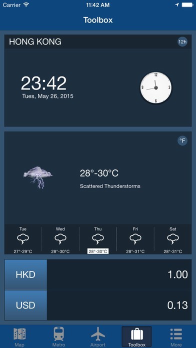 App Storeより引用本アプリはホンコンでの都市、地下鉄、空港のオフラインマップを提供しております。綺麗なマップと正確なGPS追跡により、飛行機から降りてから、税関を通し、地下鉄に乗り、市街観光までの一連のマップ情報を提供しており、ホンコンで快適なDIYツアーを楽しむことができます。すべてのデータは本体に保存され、3G、WiFi及びデータのローミングが必要でなく、高価なローミング費用を節約することもできます。旅行計画リストが内蔵され、旅行計画を作ることも、自分の旅程を随時記録することもできます。地下鉄と空港のマップはスライスローディング方式を採用することにより、簡潔で綺麗です。 旅行ツールボックスは、都市のローカルタイム、天気予報、通貨コンバータを含んでいる。