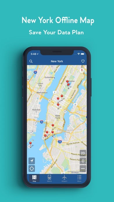ニューヨークオフラインマップ—都市、地下鉄、空港のスクリーンショット