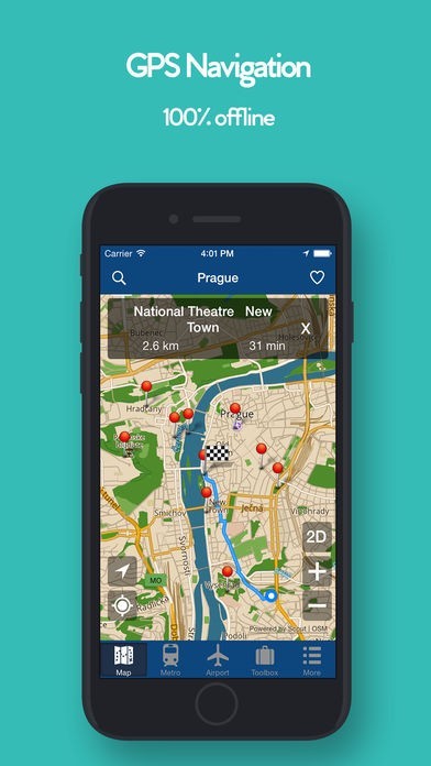 オフラインでプラハの地図が使用できるため通信費用が大幅に節約できる