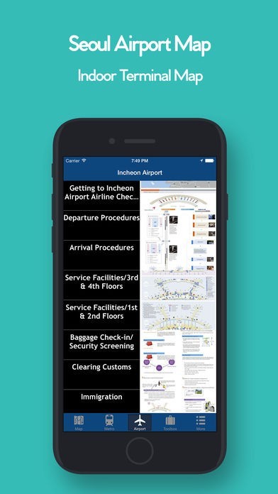 ソウルの空港の地図も表示できるので、はじめて旅行にきた方でもついたばかりで迷うことがありません。地図を見ながらATMを探したりインフォメーションカウンターを探したりすることができます。