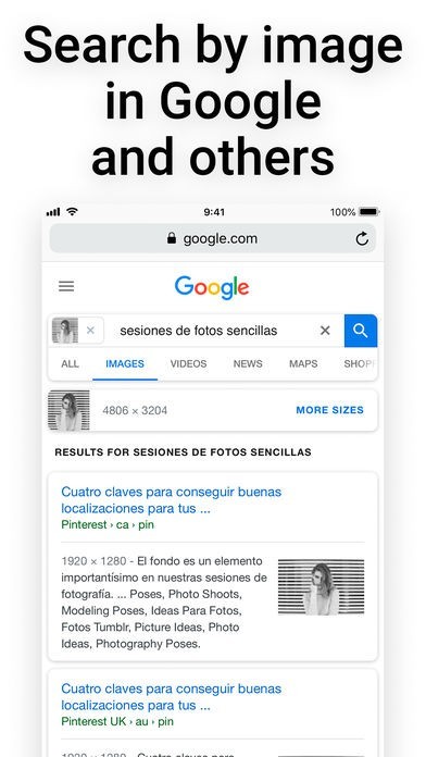 App Storeより引用The application makes it easy to search by images in Google, Yandex and Tineye from a mobile phone.