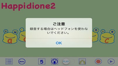 5つの音が出せます。カエルボタンを押すと、音が出ます。