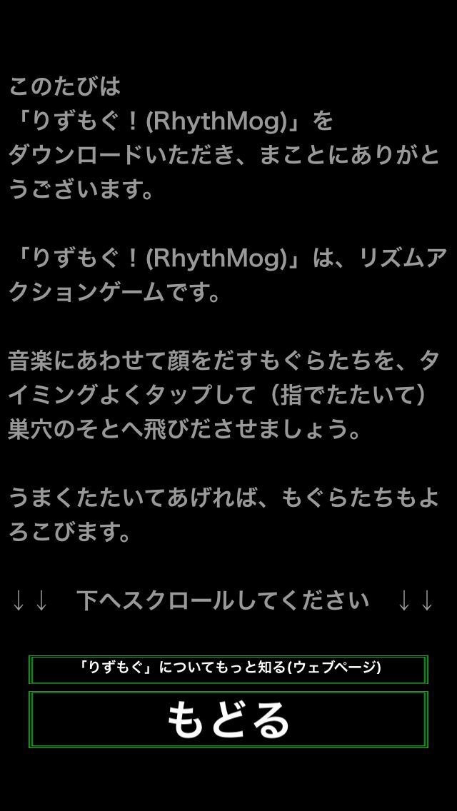 小さな子供が楽しめるように、プレイ方法は、リズムに合わせて出てくるモグラをタップするだけのシンプルな遊び方になっています。また、収録されている楽曲も"雨降り散歩"など親しみやすい童謡となっています。
