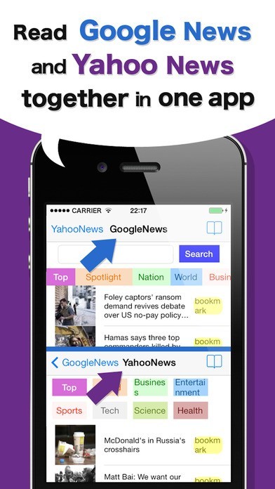 このアプリは、一つの画面で GoogleニュースとYahooニュースが見られるサイトです。それぞれのニュースを見比べて、最新の情報を得ることができます。スポーツや政治、エンターテイメントとカテゴリ別に分かれているので調べたいものがすぐに見つかります。ニュースの見出しを指でタッチするだけで、そのニュース本文へ入っていくことができます。最新ニュースを手軽に検索したい方におススメです。