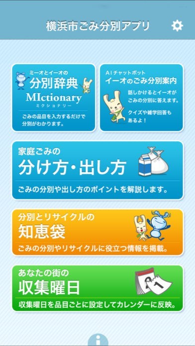 分別方法がわからないごみの品目を入力するだけで分別方法や出し方を確認できる機能やごみの分別やリサイクルに役立つ情報を確認できます。