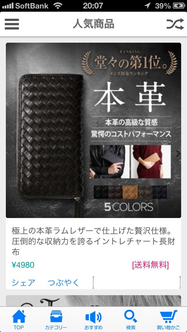 「U-STREAM」では、財布や時計、バッグなどの多数のカテゴリーに分けてセレクトアイテムを用意しています。セール商品の一覧機能からはお得なアイテムのチェックが可能。ここだけのとっておきセール情報なども掲載されるため、ショップファンには見逃せません。おすすめ商品のレコメンド機能では、閲覧した商品や購入した商品をアプリが分析して、好みのアイテムを提案してくれます。アプリを使い続けることにより、さらにセンスに合ったアイテムが提案されるのも嬉しいポイント。また、シャッフル機能も用意しています。スマートフォンを振ることでランダムでアイテムを表示。これまで知らなかったアイテムと出会うことができるでしょう。
