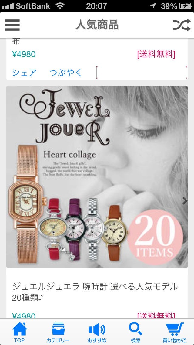 シャッフル機能で新たなアイテムを発見!財布や時計、バッグなどのセレクトアイテムを多彩なカテゴリーに分けて表示!