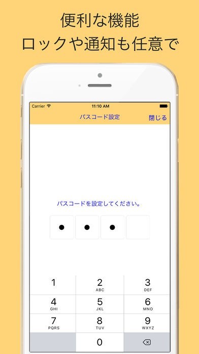 あらかじめ指定した文字列を入力しないと内容を見ることができないように設定することができます。他の人に盗み見されることを防ぐことができるので、とても使い勝手が良いです。
