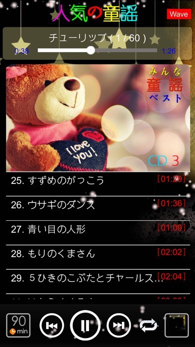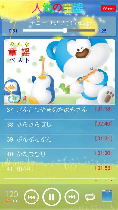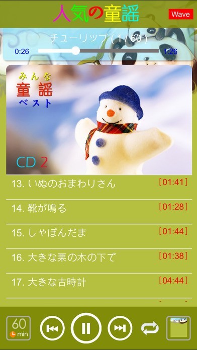 App Storeより引用こどもたちの大好きな曲を格安な価格で発売,童謡CDの決定盤。