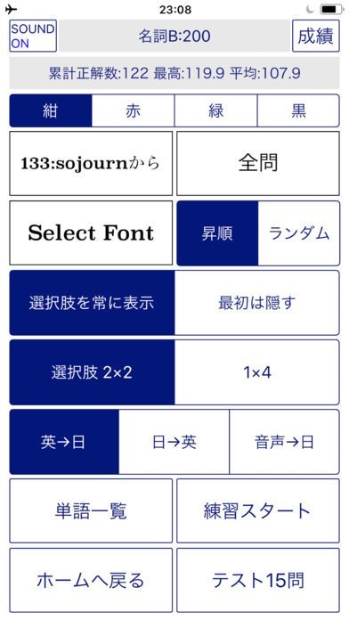 一度に挑戦できる問題数や選択肢の数、出題される単語の範囲など自由に問題の設定を変更することができます。日々の復習やテスト前の総まとめなど用途に合わせて使える機能です。
