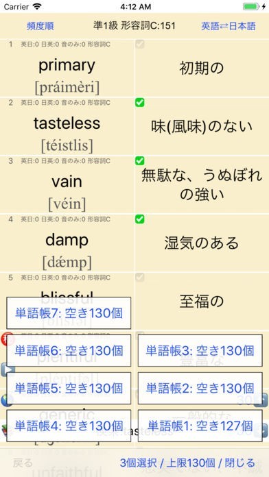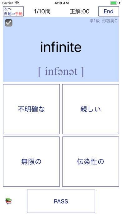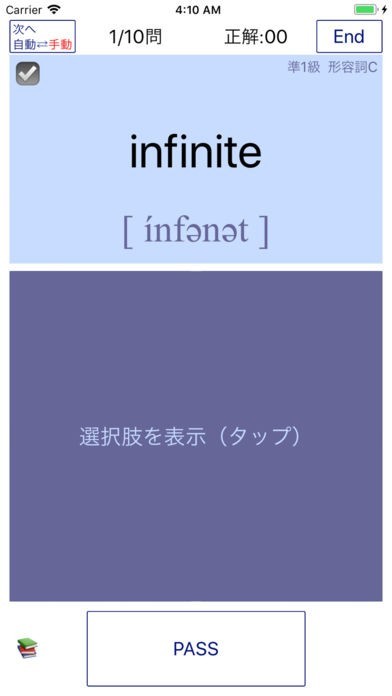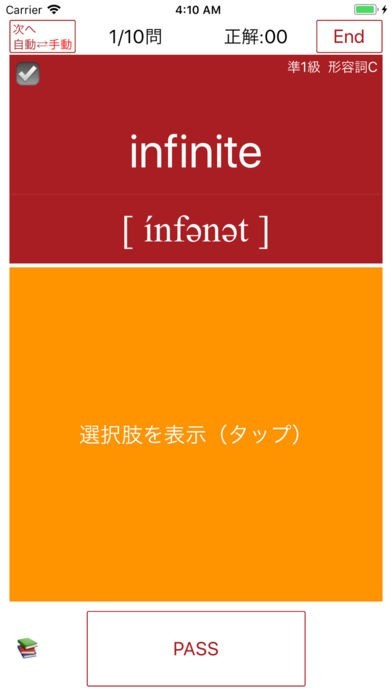 単に意味が表示されるだけではなく、4択問題として出題してくれるのでいい勉強になります。