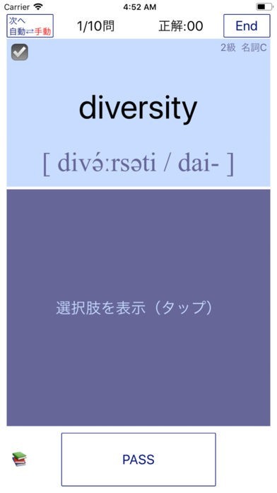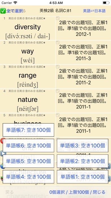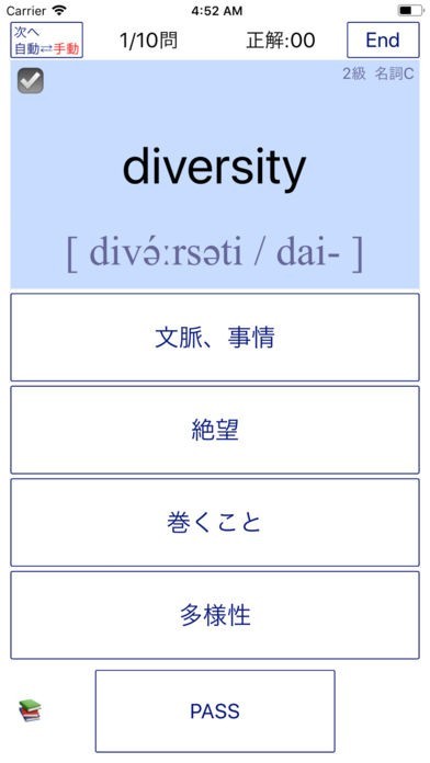 英検2級に関する問題が解けるようになっています。また複数の過去問に対応していて、正答数が分析出来るのも利点でしょう。カテゴリー別に単語が表示出来るのも特徴です。