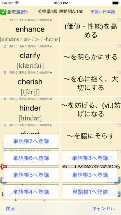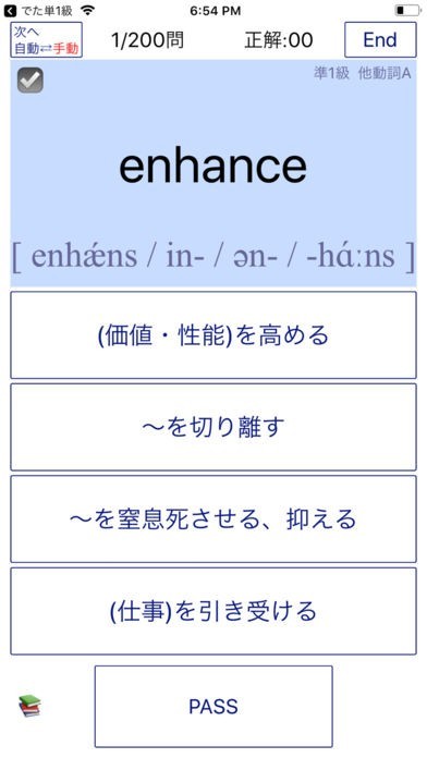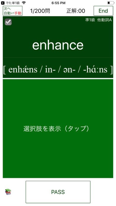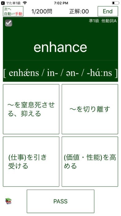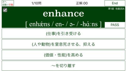 英検準1級に関する練習問題が数多く収録されていて、ランダム形式でテストに挑戦出来るのが特徴でしょう。正答率やスコアを表示させる事が可能で、データを履歴に残せるようになっています。