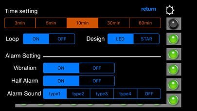このアプリではタイマー機能が存在し、3分、5分、10分といったタイマー機能が存在します。タイマー機能にも点滅で時間が分かったり、円グラフにて残り時間を把握することができます。