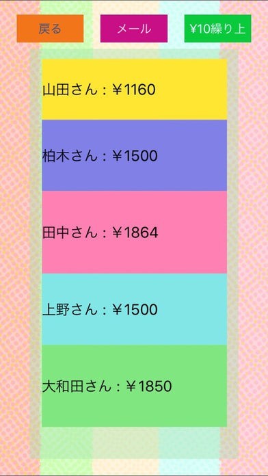 細かい金額でのやりとりが面倒な場合はスッキリと10円以下は切り上げて計算することもできます。また、計算結果をメールで送信することもできるので、後日集金する場合や頼まれて買って帰る時の請求も分かりやすくて便利です。