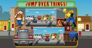 横スクロールにゲームが進んでいき、車や人々などを乗り越える爽快感を楽しめる