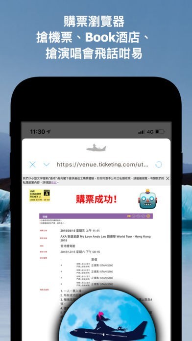 購票瀏覽器:預設各航空公司、旅遊網站購票捷徑,買飛唔使左搵右搵!仲有得買埋演唱會飛添~