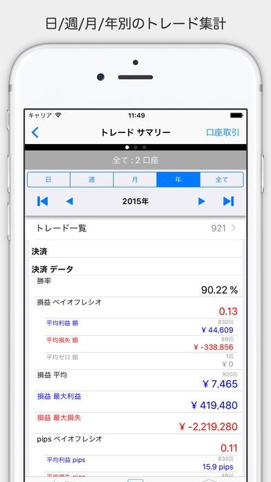 record FXはFX取引の状況を入力することで、損益の状況を年単位、月単位、週単位、日単位での確認や損益グラフの表示が可能で、FX取引をスムーズに運用することができます。