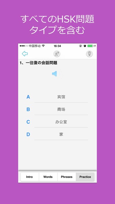 "中国語を学ぶーHello HSK5級"は、HSK(中国政府公認中国語試験)5級合格に向けた学習ができるアプリとなっています。問題は聴解・読解・作文の3コースを収録しており、過去問に沿った問題が1750問以上収録されています。また、それぞれのコースでは、解答スキル・核心語彙・常用フレーズなどが収録されており、試験合格に必要ななスキルを偏りなく学習する事を可能にしています。出題される問題は、長文を読んで解答するといった、少々レベルの高い内容になっていますが、力を養うのには最適と言えそうです。さらに、掲示板機能を使用する事により、中国語の会話を通して実践的な能力を養うサポートにつながります。