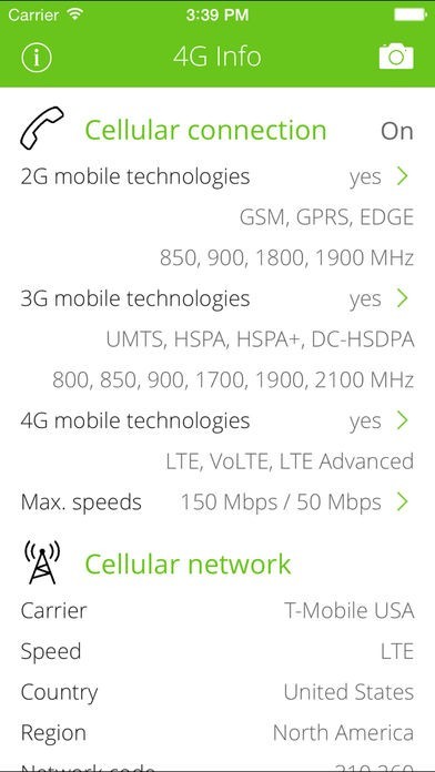 SIMカードの購入などの参考に現在接続している通信帯域などをチェックできる!