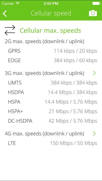 2G、3G、4G、GPRS、EDGE、UMTS、HSPA、LTE、VOLTEなど旧来のデータ通信形式から最新のデータ通信形式のなかから、お使いのデバイスがサポートしているデータ通信形式を示すことができるようになっています。
