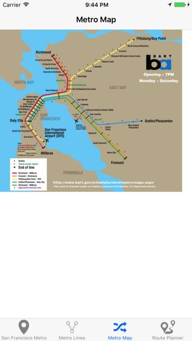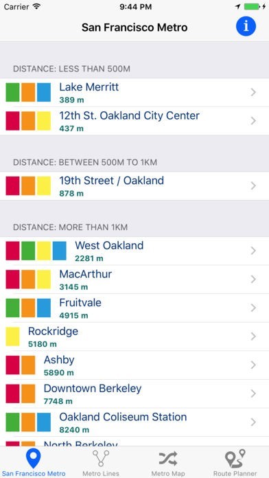 Это программа предназначена для тех, кто в Сан - Франциско хочет пользоваться Метро в качестве транспортного средства. С помощью программы легко найти ближайшую станцию Метро. Программа определит расстояние до ближайших станций Метро по отношению к точке нахождения и покажет их вам на карте и в виде списка.