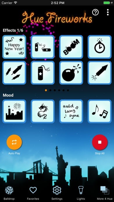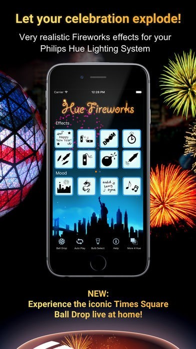 App Storeより引用Have firecrackers burst in your room and let colourful rockets light up the ceiling or have your party crowd go wild with a New Year’s Eve countdown that blasts your room with colour. Hue Fireworks lets you create explosive celebrations with a beautiful dynamic interface and exploding fireworks. All you need is the Philips hue connected lights and this app. Darken your room and connect the audio to your speakers. It’s never been easier to get the party going.