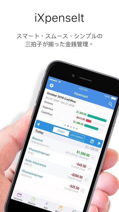 「iXpenseIt (出費 + 収入 = 節約)」は、スマートフォンを使って自分の収支の管理を行うことができるアプリとなっていて、PDFで出力することもできます。