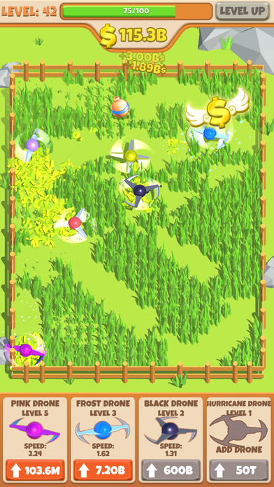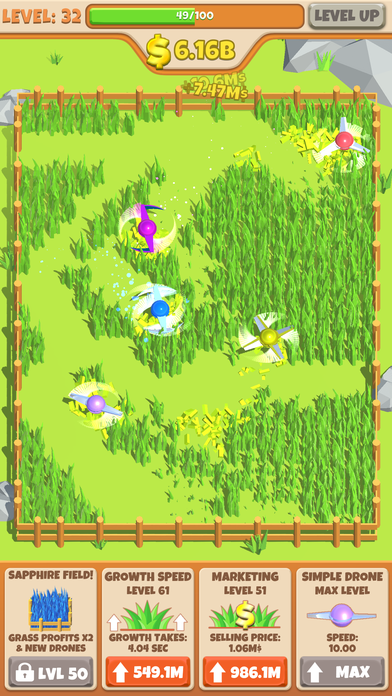 さまざまなコンディションの庭の芝を刈り続けることで、経験値を集めることが出来るようになっています。経験を積むことによりカッターのサイズを大きくしたり、切れ味をアップさせることも可能です。