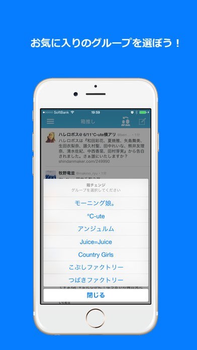 ・「モーニング娘。」「℃-ute」「アンジュルム」「Juice=Juice」「Country Girls」「こぶしファクトリー」「椿ファクトリー」の各グループとメンバーを選択可能!
