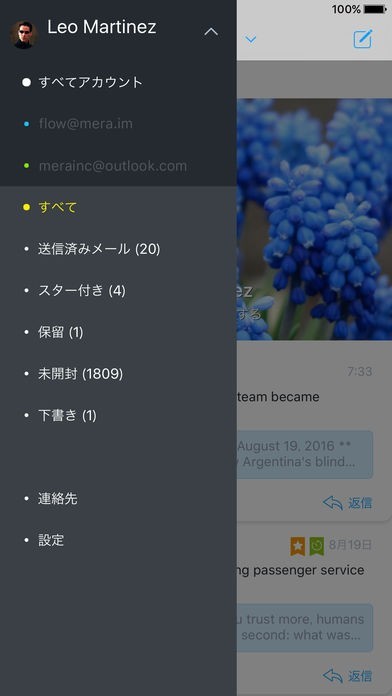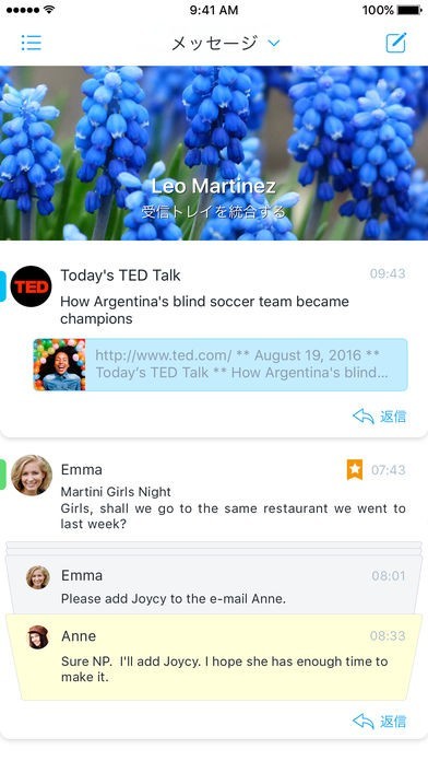 アカウントは代表的なGail、iCloud,Outlookを含む5つ以上のメールに対応していますから、あなたがおもちのアドレスも必ず使うことができます。今まで仕方なく使っていたメールアプリを、いっそのことすべてSNS風に一新してみましょう。仕事や勉強も効率化すること間違いなしですよ。