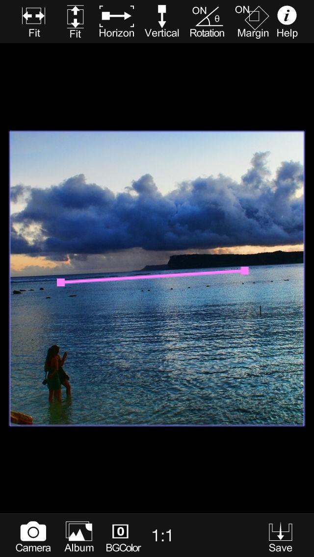 PhotoClip can correct horizontal line, can trim to your selected aspect ratio and rotate them.