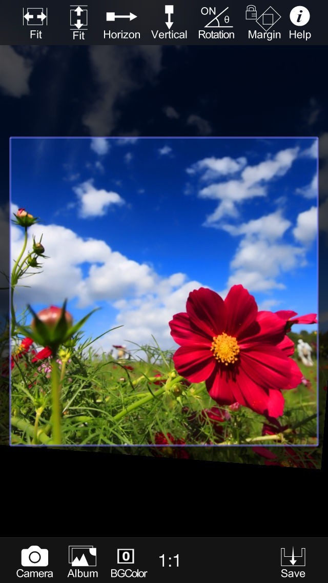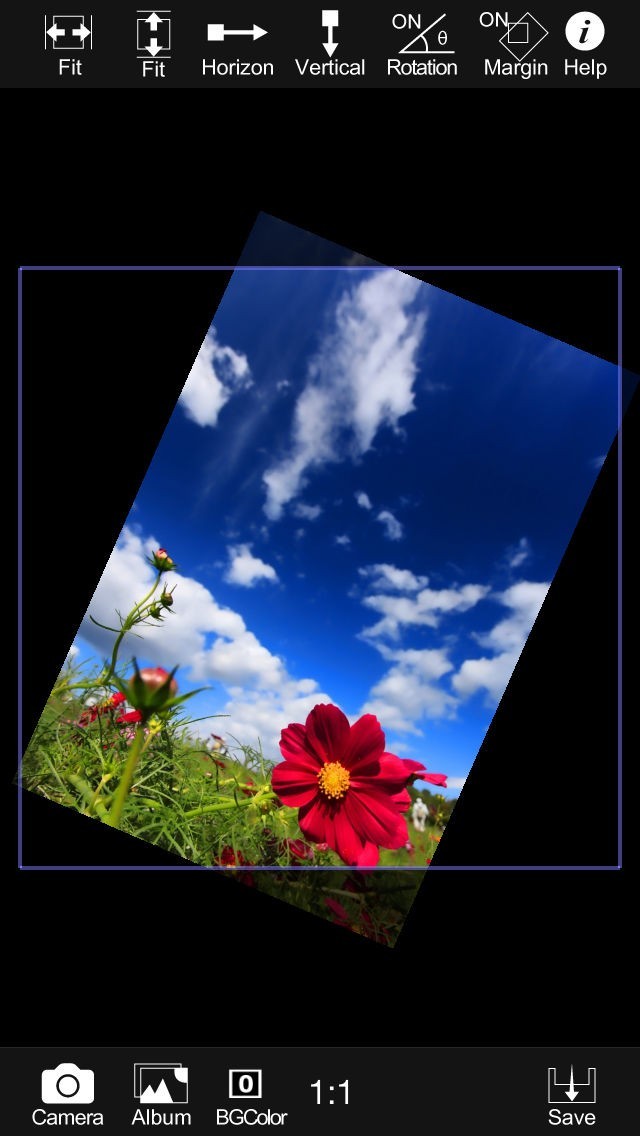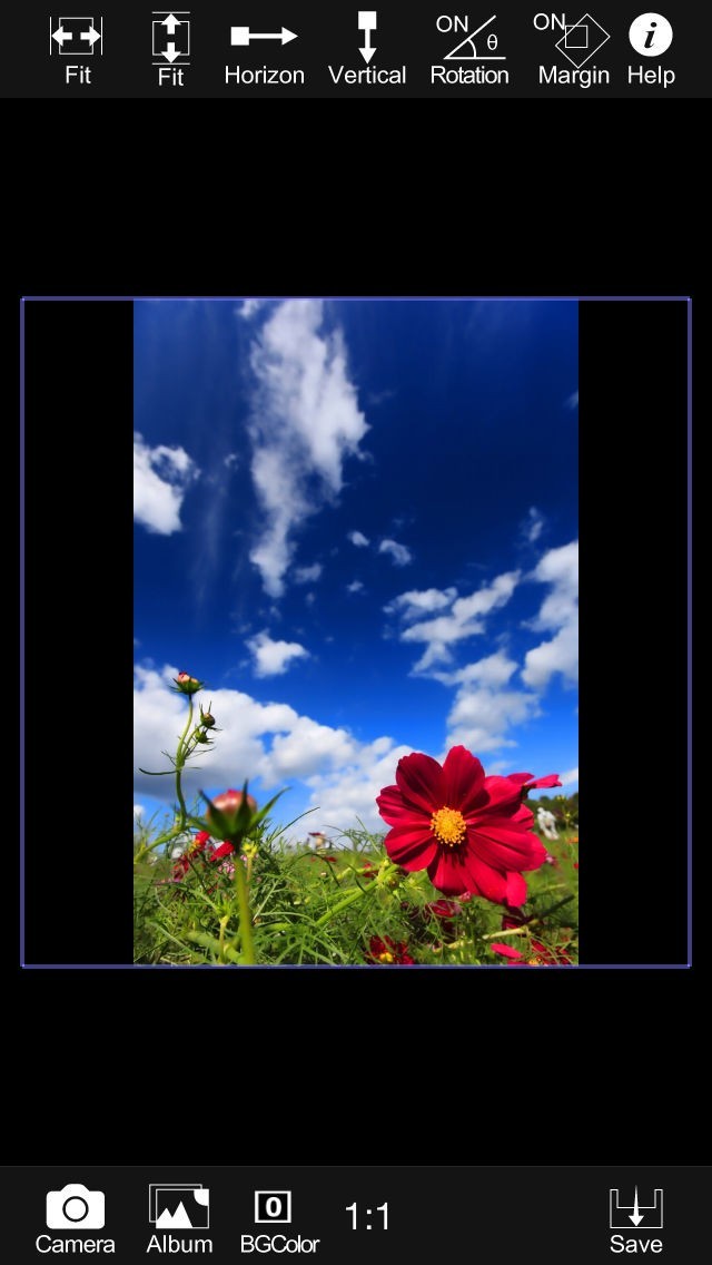 3.そして人気のInstagram(写真投稿サイト)等によくある、1:1正方形画像に縦長写真をおさめる事もできます。
