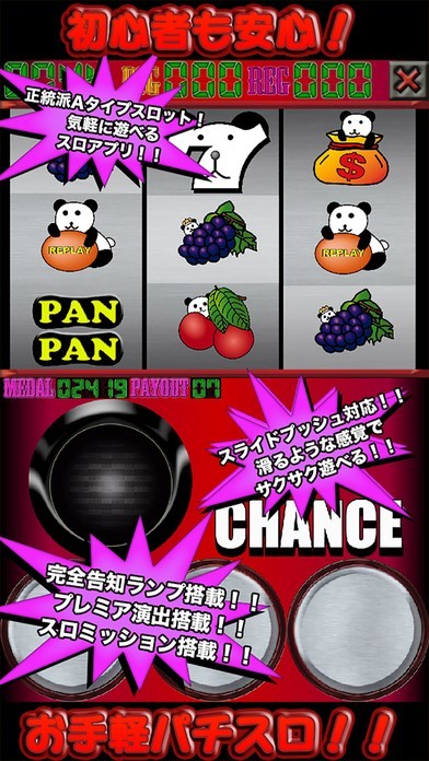 簡単操作でパンダのパンちゃんが可愛く手軽にスロットを楽しみたい方に最適、スロットの目押しと、レバーとボタン操作の感覚が鍵