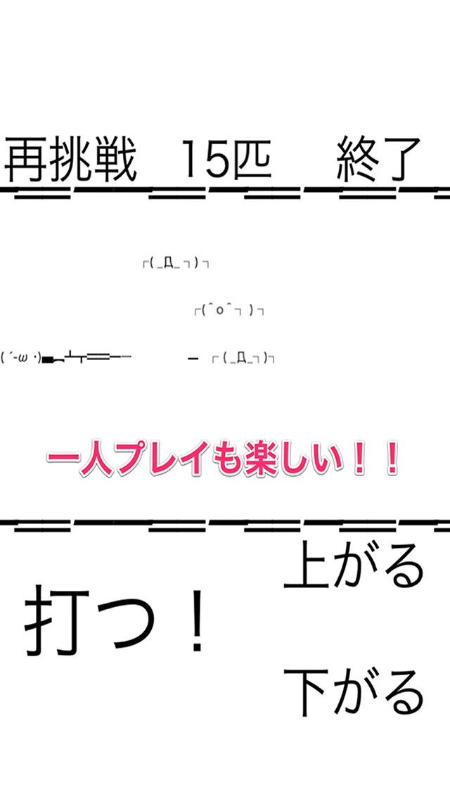 顔文字で作られるビジュアルが特徴的なシューティングゲーム、プレイヤーも敵も全て顔文字構成で、敵を撃ちまくるユニークな仕様