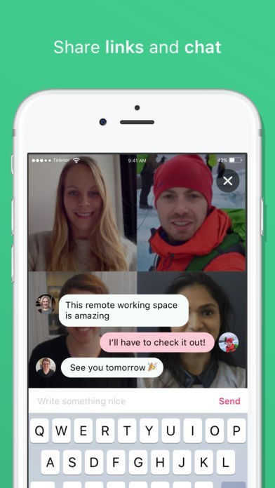 「appear.in — group video chat」は、ビジネスでの利用にも便利なビデオチャットアプリです。 チャット機能を利用すれば1対1でのチャットはもちろんのこと、複数人が参加するチャット会議としても利用可能。 可愛いスタンプが用意されており、手軽に使えるのも嬉しいポイントとなっています。 また、お互いの顔を見ながらビデオチャットも行うことができます。