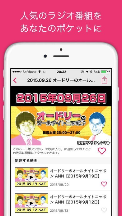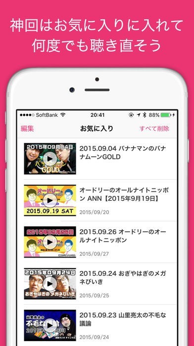 自分の気に入った放送はお気に入りに保存して何度でも聴きましょう。