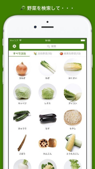 スーパーで野菜を買うときに簡単に検索できる