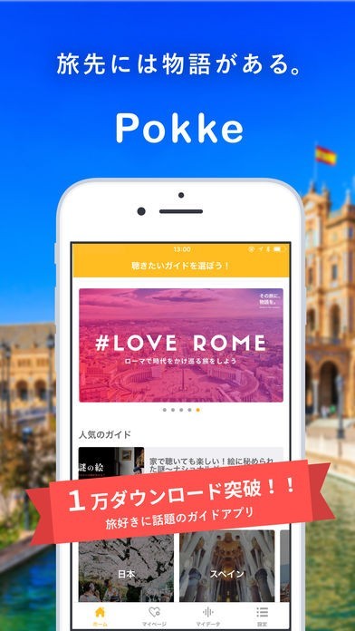 「Pokke(ポッケ)」は、旅行用音声ガイドアプリです。国内・国外ともに対応しており、現地ガイド同様の音声ガイドなので1ヶ所あたりの平均ガイド時間はなんと30分以上となっています。 GPSと連動したマップによって初めて訪れる観光名所でも迷うことなく到着できます。 ツアー機能によって旅行プランを立てる手間も省けて便利です。