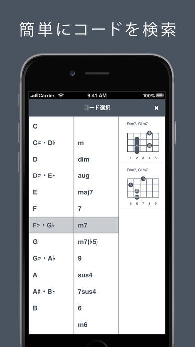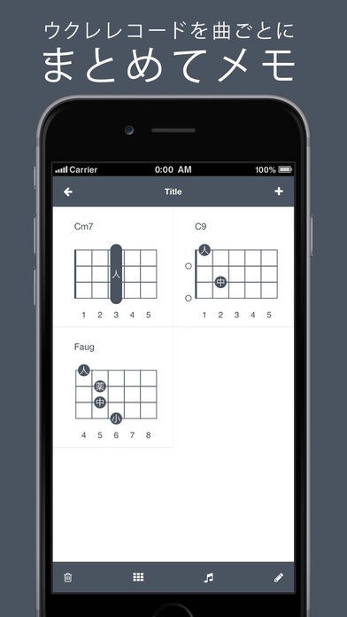 App Storeより引用ウクレレ初心者にもおすすめ!ウクレレコードの押さえ方を簡単に調べられるコードブックアプリ!