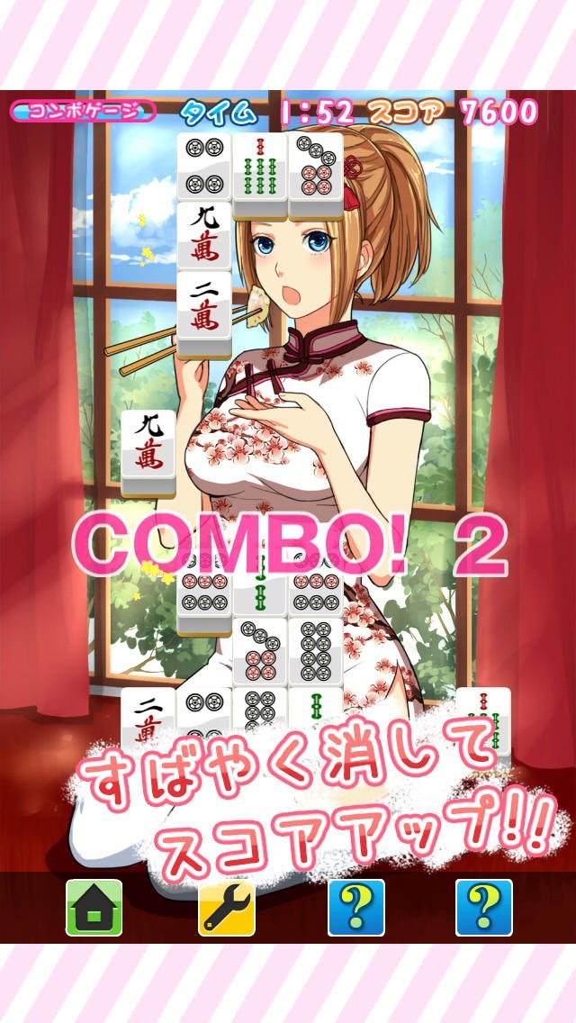 可愛い女の子キャラクターが多数登場し、シンプルに遊べるパズルゲームとして、多忙な仕事の休憩時間や、癒されたい時にも最適です。ステージに散りばめられた麻雀牌の中から同じ絵柄を探し、直線で繋ぐだけと簡単なルールも遊びやすいポイント。牌と牌を繋ぐ線は必ず2角以内に収めなければいけないため、頭を使う脳トレとしても活躍してくれるでしょう。素早く牌を消してコンボを発生させることが、ハイスコア獲得への近道となります。背景には女の子キャラクター達が登場する他、ヒント機能も充実しており、消し方が判らなくなった場合にはヒントを参考にして最後までクリアできるようになっています。