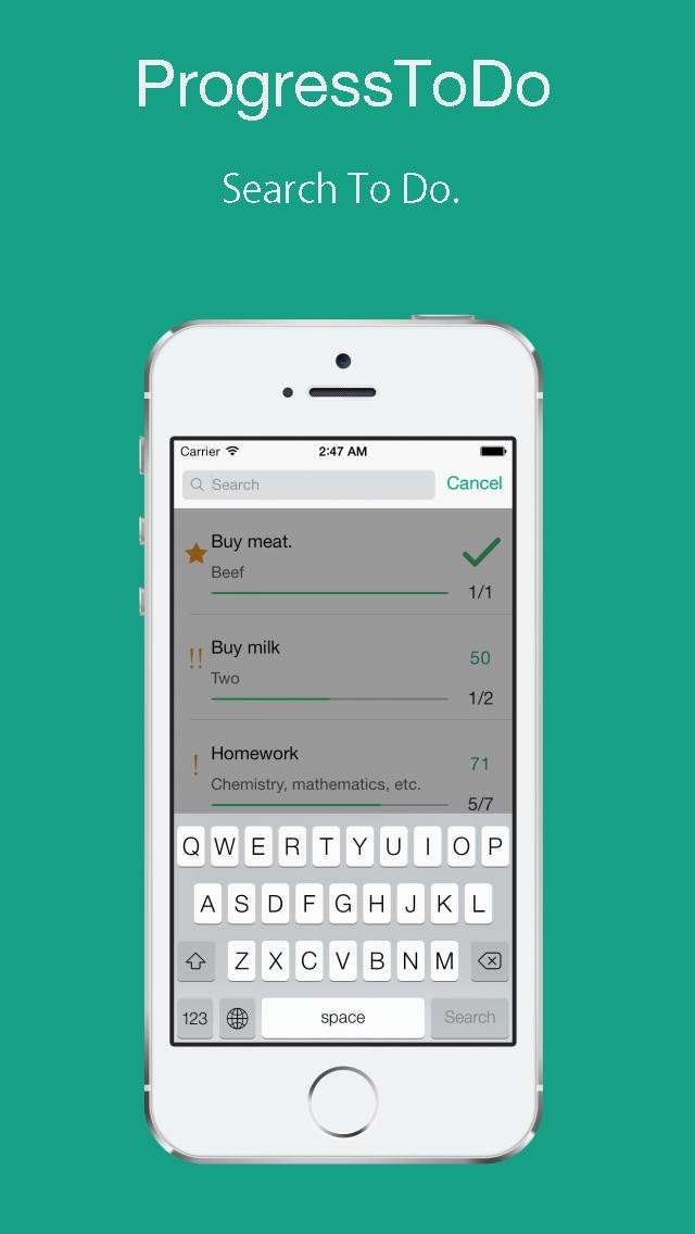 モチベーション維持にも役立つ「ProgressToDo」は、使いやすいTODO管理ツールです。1タップで起動できるTODO追加機能では優先度の設定が可能。重要なタスクは最優先にしておくことで、うっかり忘れて大慌てといった事態を避けることができます。進捗状況の表示機能を備えているのがこのアプリならではのユニークな特徴。プログレスバーやパーセントで表示される進捗状況によって、目標達成への意欲の維持に役立てることができます。やり残したタスクがないか気になったら、クイック検索機能を利用してみましょう。フリーワードを入力で手軽に検索が行えるため、お目当てのタスクを手早く探し出すことができます。