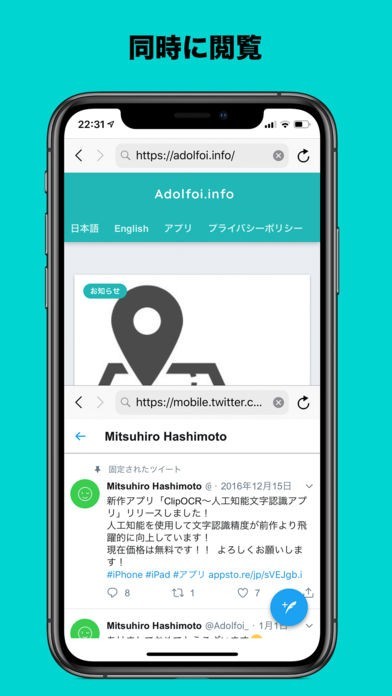 App Storeより引用Panelz 分割ブラウザアプリは二画面で操作できるブラウザアプリです。
