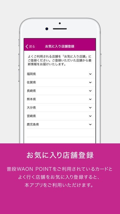 アプリを入れると、イオン九州のお得情報やセール情報が手に入ります。また、チラシ検索もできるのでお買い得情報も得やすい。お持ちのWAON POINTカードを登録すると、残高のチェックもできて便利です。
